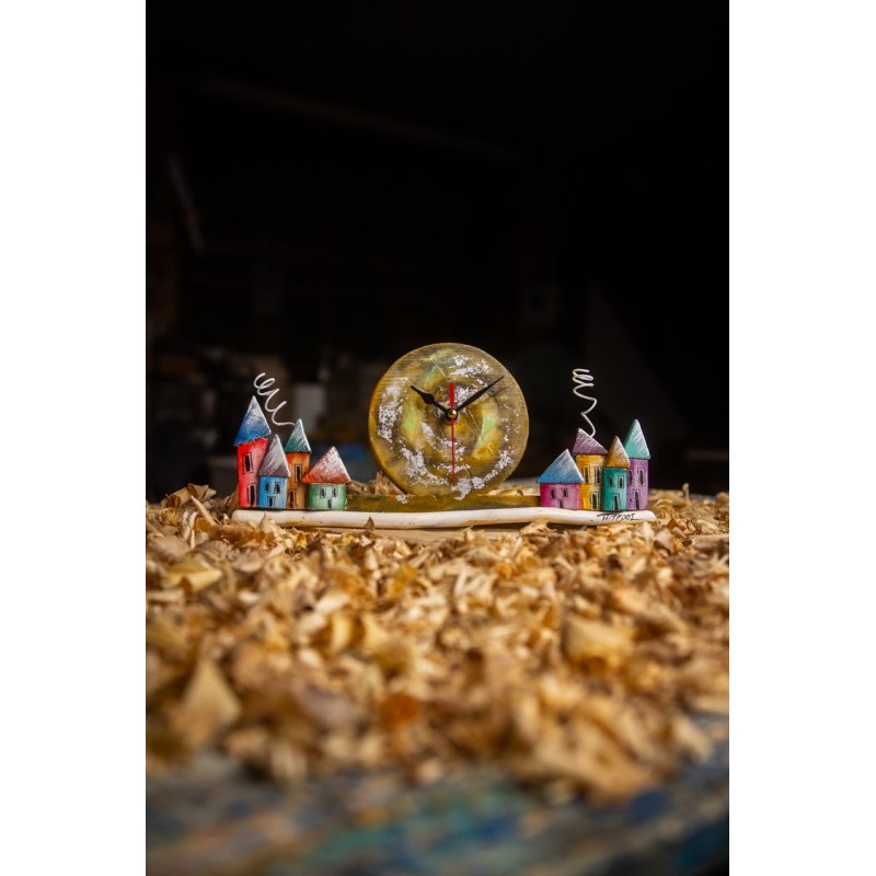 mega Wooden Clock with 8 Houses. Dimensions 30x14x3,5cm / 310gr