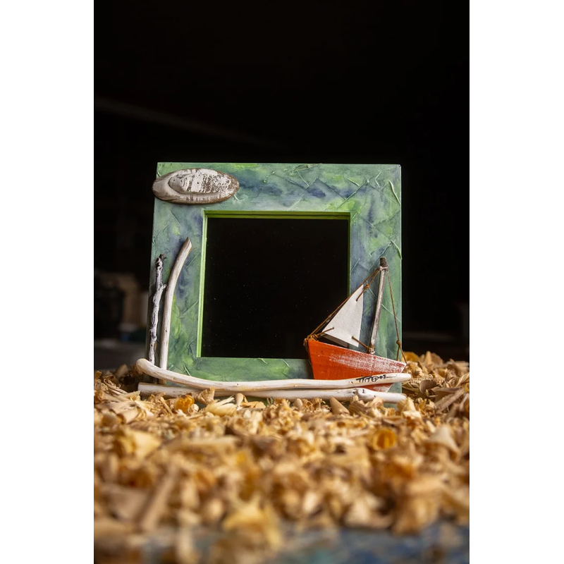 Square Wooden Mirror with Boat Green. Dimensions 27x27x3,5cm / 230gr