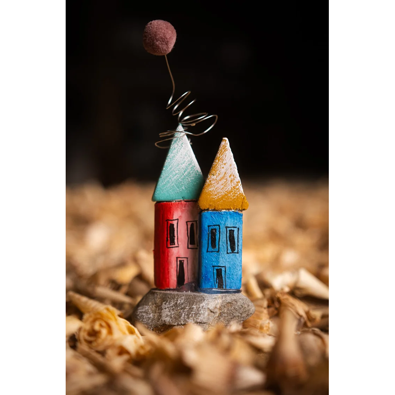 Wooden Houses with Stone & Pom-Pon. Dimensions 10x12x5cm / 150gr